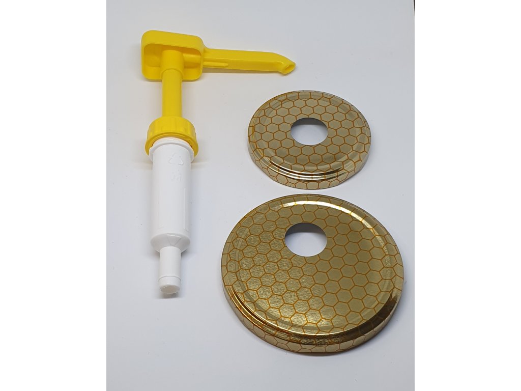 Balenie obsahuje: Pumpičku na med, víčko na malú fľašu, víčko na veľkú fľašu